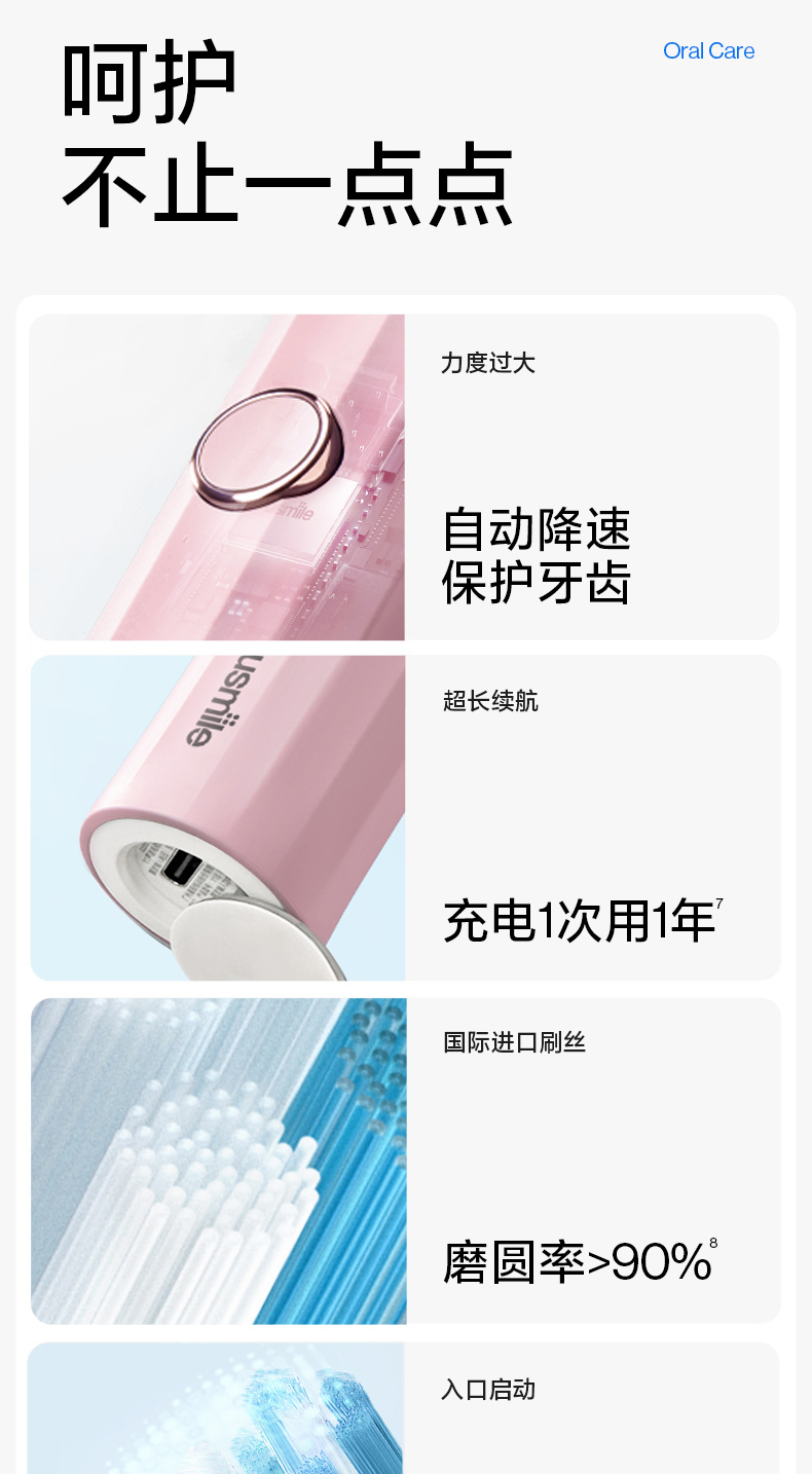商品名称:usmile笑容加 罗马柱电动牙刷Y1S 粉/蓝/灰 可选下单备注颜色