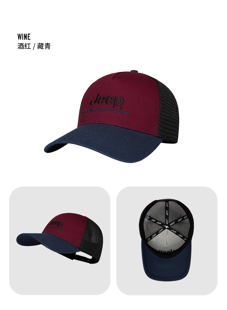 商品名称:Jeep吉普镂空网眼透气鸭舌帽防晒大檐帽夏季男士钓鱼帽子垂钓专用 P223078914 酒红+藏青/浅灰+深灰/灰蓝+藏青 56-62CM 可调节 下单请备注颜色