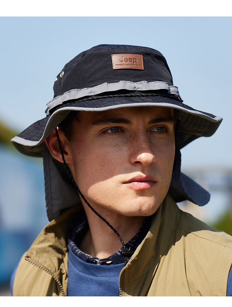 Jeep吉普钓鱼帽子夏季男UPF50+防紫外线透气渔夫帽加大帽檐可调节 P223078932 卡其色/黑色/灰色 60CM 均码 下单请备注颜色