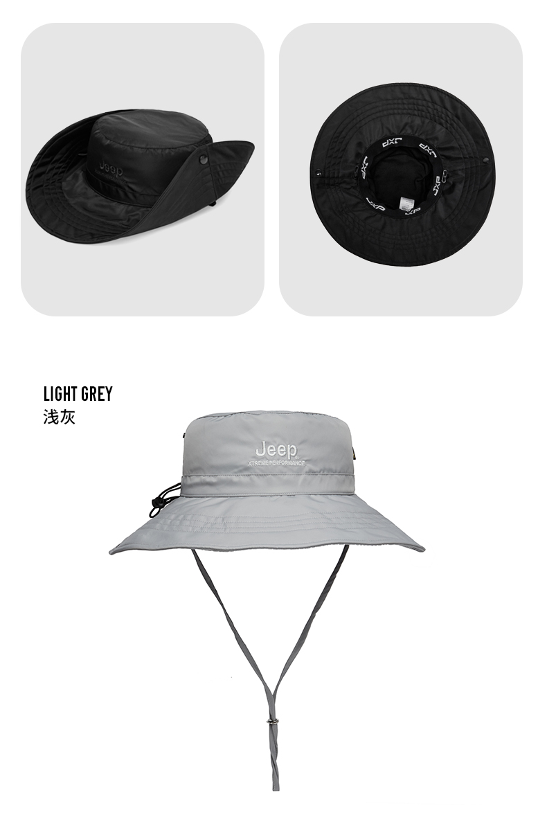 商品名称:Jeep吉普户外春夏防晒帽子男女防紫外线遮脸渔夫帽可折叠钓鱼帽 P213078920 黑色/白色/浅灰 58-60cm 可调节 下单请备注颜色