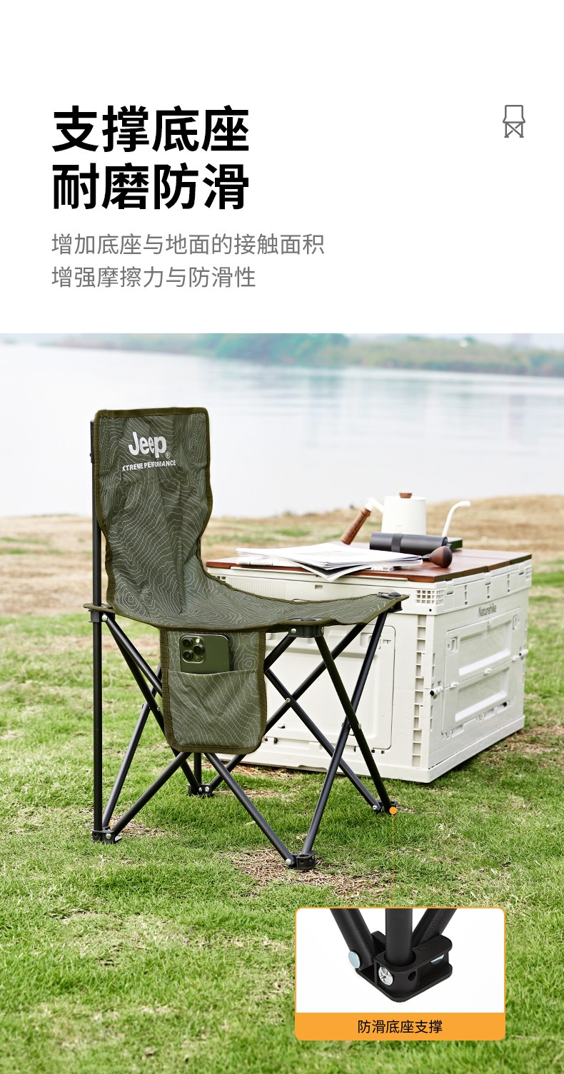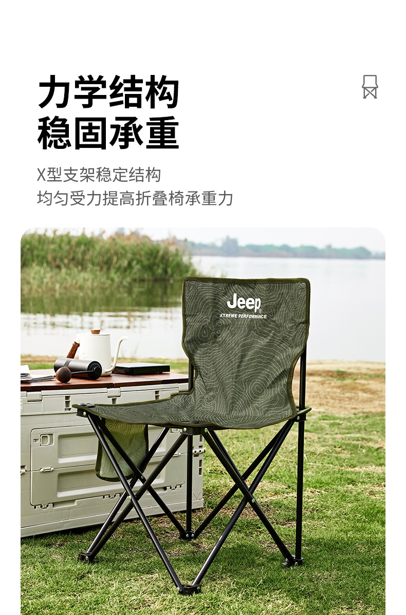 Jeep户外折叠椅轻便携式露营野餐装备凳子靠背椅子沙滩椅 P323078107 卡其/黑色 /墨绿 尺寸39*39*65cm 下单请备注颜色