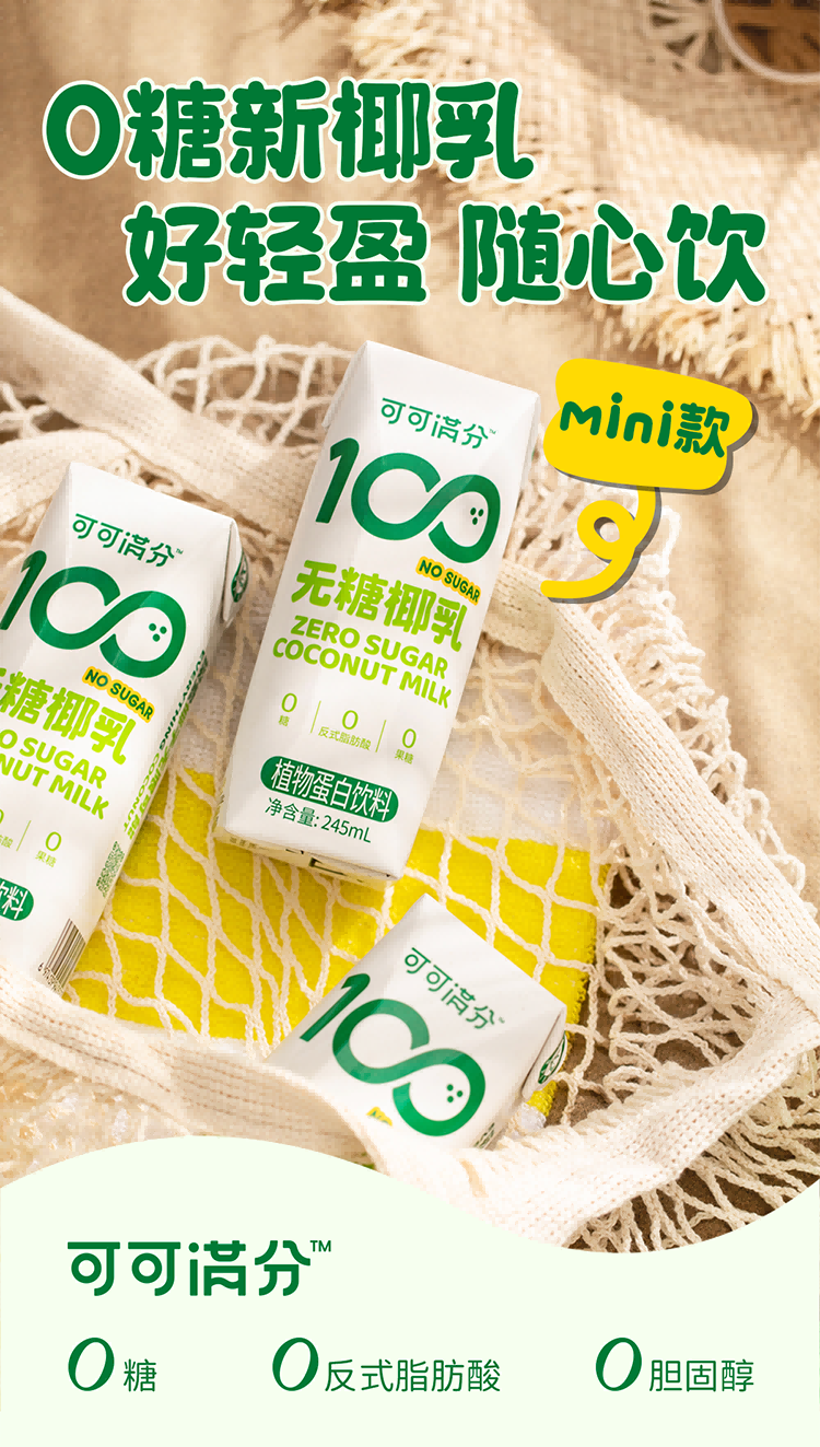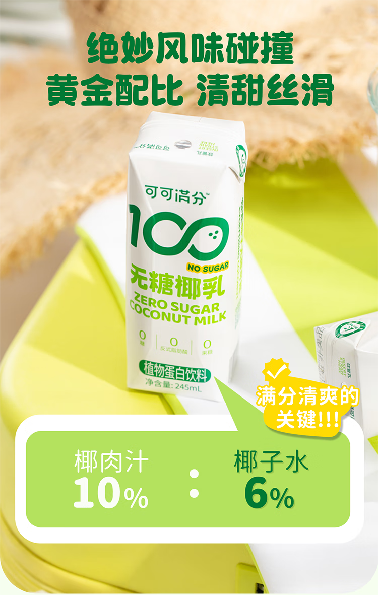 可可满分无糖椰汁椰奶饮料 拿铁咖啡伴侣0添加蔗糖 245ml*10瓶