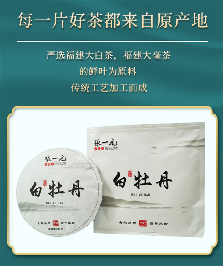 商品名称:张一元 紧压白牡丹白茶饼 357克 6920751014573