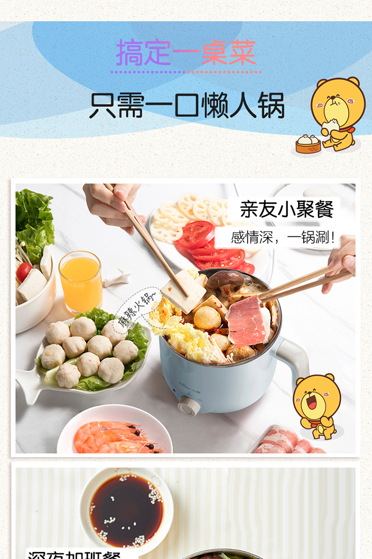 商品名称:小熊(Bear)电煮锅小电锅电火锅多功能迷你电热锅宿舍锅1.2L DRG-C12R5 不带蒸笼