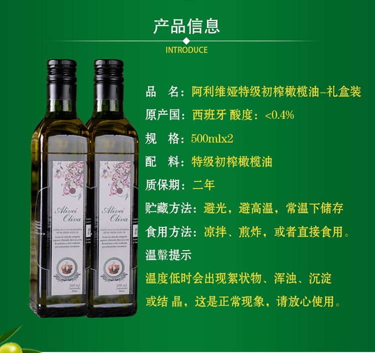 商品名称:阿利维娅 西班牙进口 特级初榨橄榄油500ml*2 8437125654764
