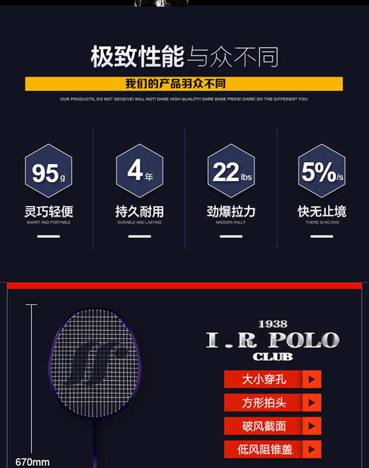 商品名称:1938 I.R POLO CLUB 羽毛球拍套装 IR-YD0016