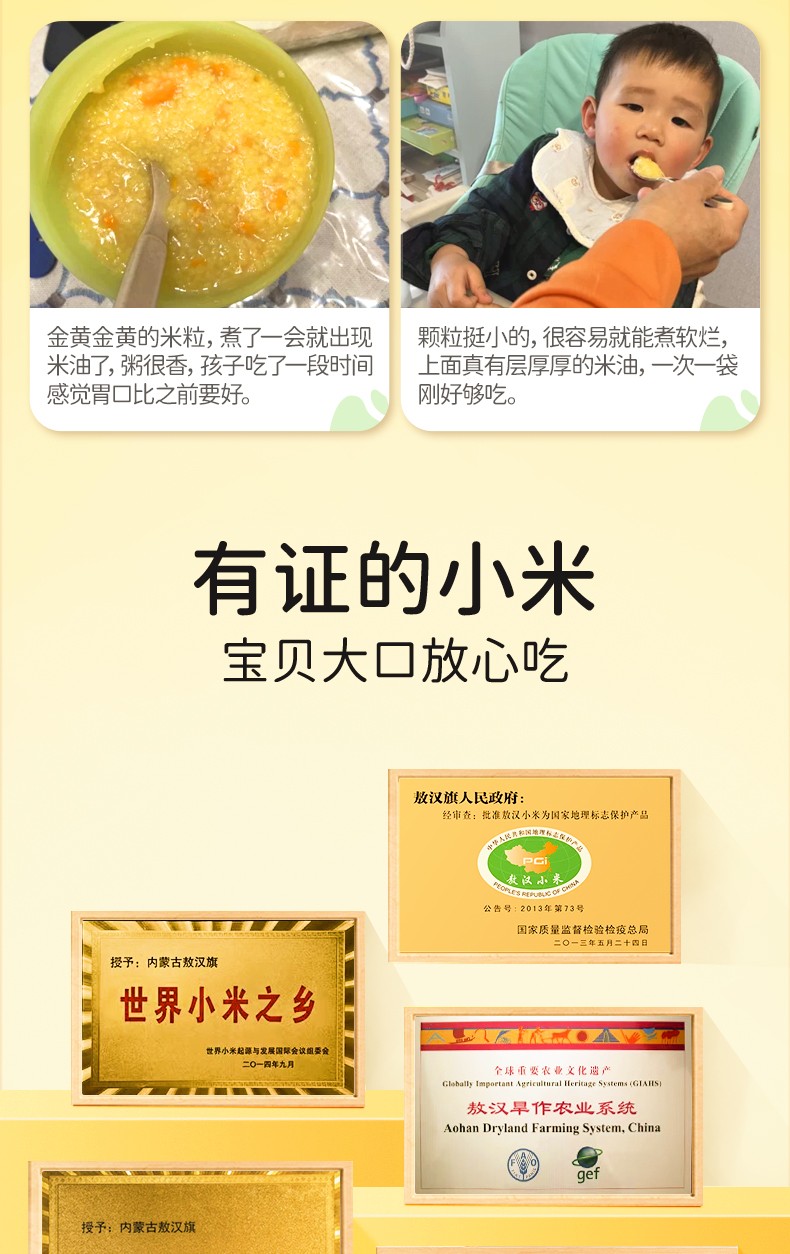 商品名称:芽芽乐 有机厚油黄小米(250g)*2 6971530750281