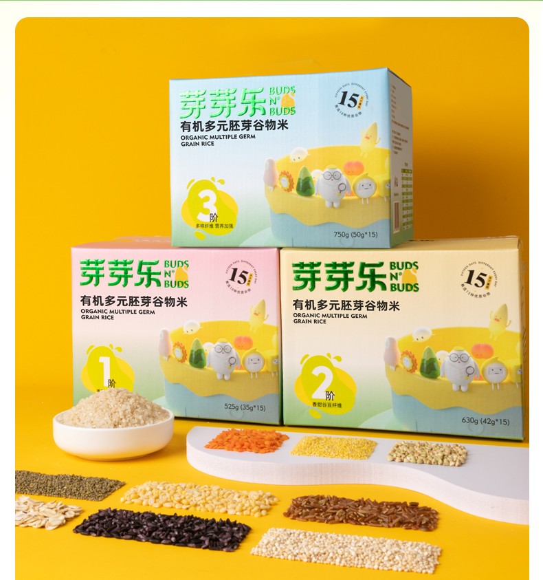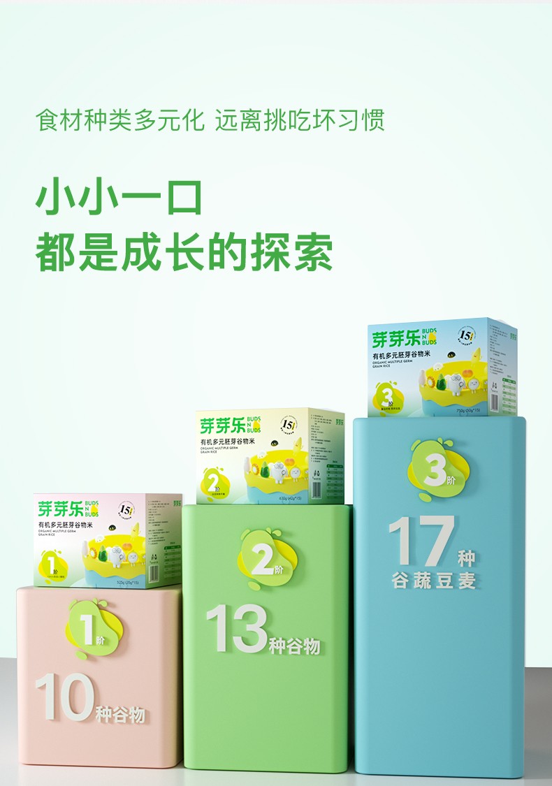商品名称:芽芽乐 有机多元胚芽谷物米 15天不重样 3阶 750g (50g*15)*2 6971530750502