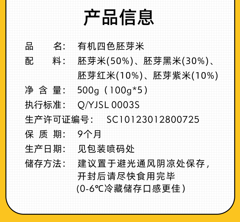 商品名称:芽芽乐 有机四色胚芽米500g(100g*5)*2 6971530750632