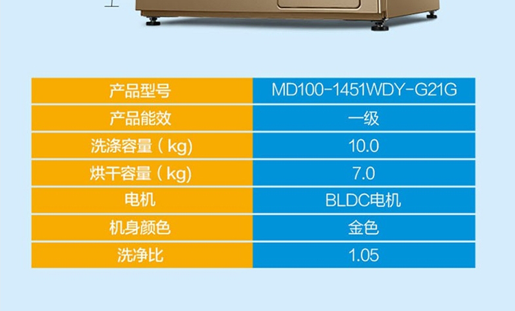 商品名称:美的滚筒洗衣机(洗烘一体机)MD100-1451WDY-G21G