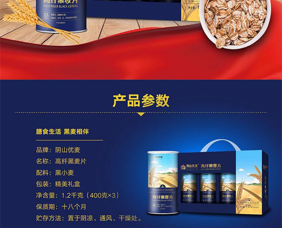 商品名称:阴山优麦 高纤黑麦片1.2千克(礼盒)