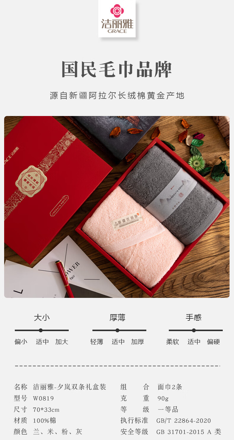 洁丽雅(GRACE)W0819夕岚双条毛巾礼盒装70*33cm 6925954491893 颜色随机发