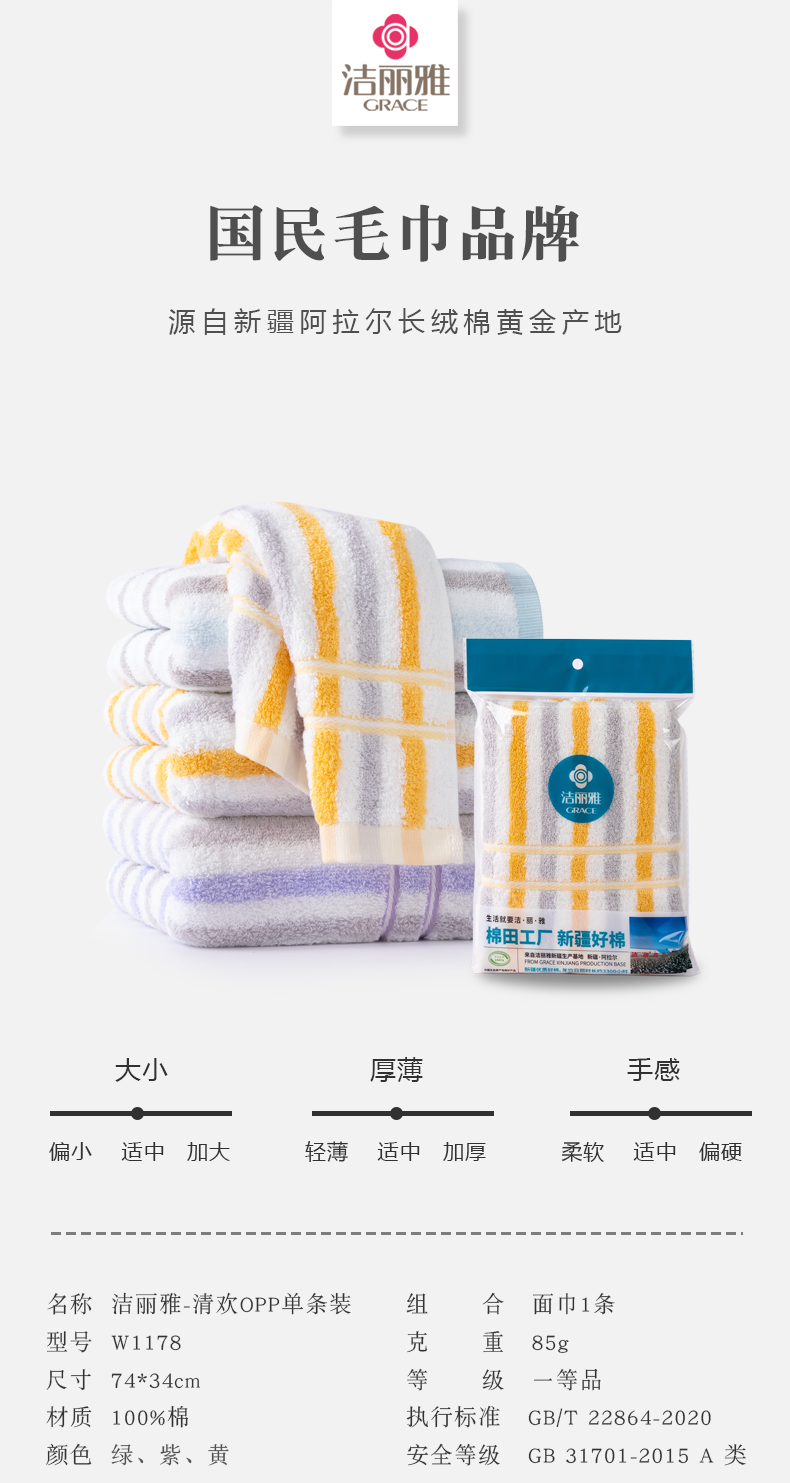 洁丽雅(GRACE)W1178清欢OPP袋单条毛巾装74*34cm 6925954494757 颜色随机发