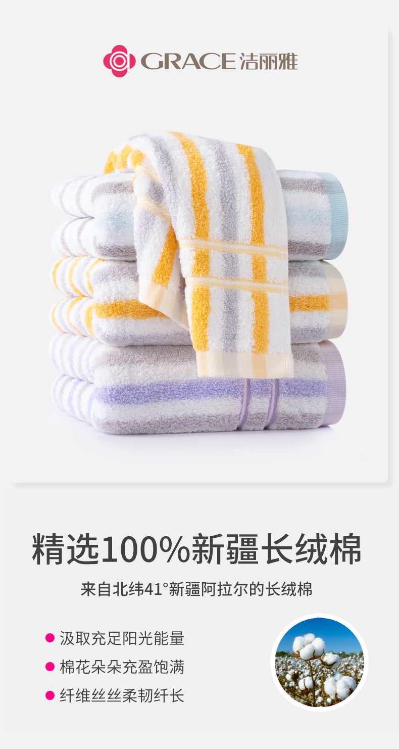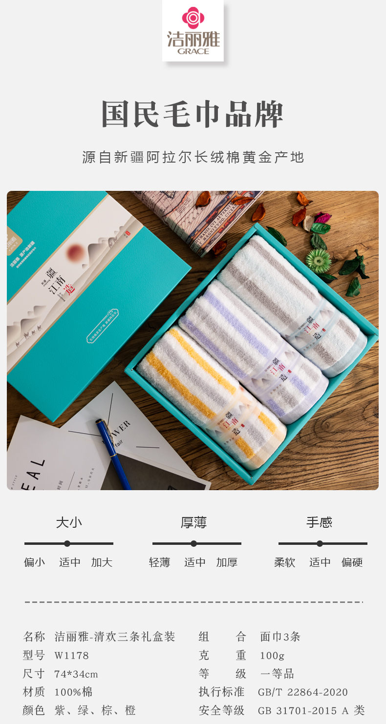 洁丽雅(GRACE)W1178清欢三条毛巾礼盒装 74*34cm 6925954494757 颜色随机发
