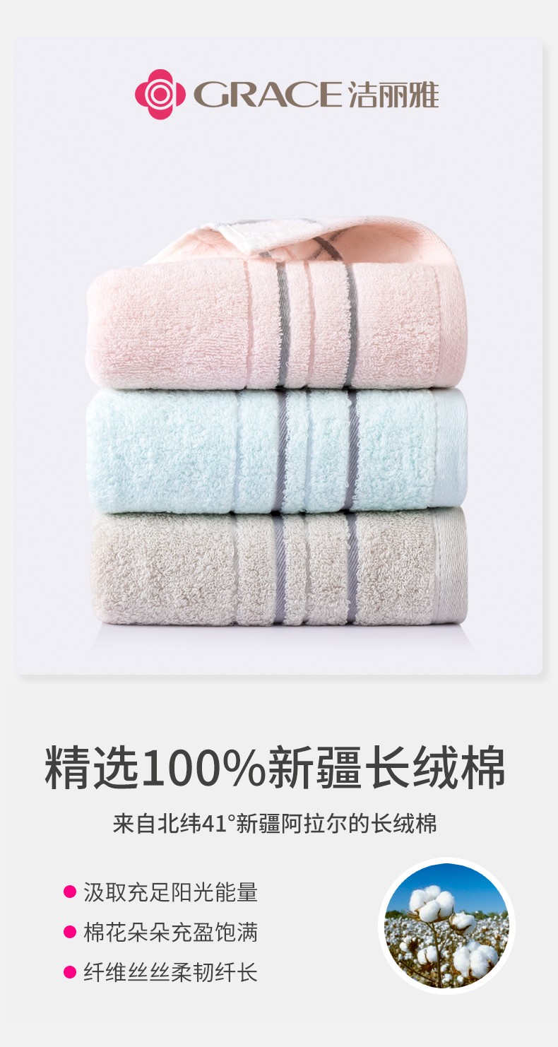 洁丽雅(GRACE)W1184秋白三条毛巾礼盒装 74*34cm 6925954494818 颜色随机发