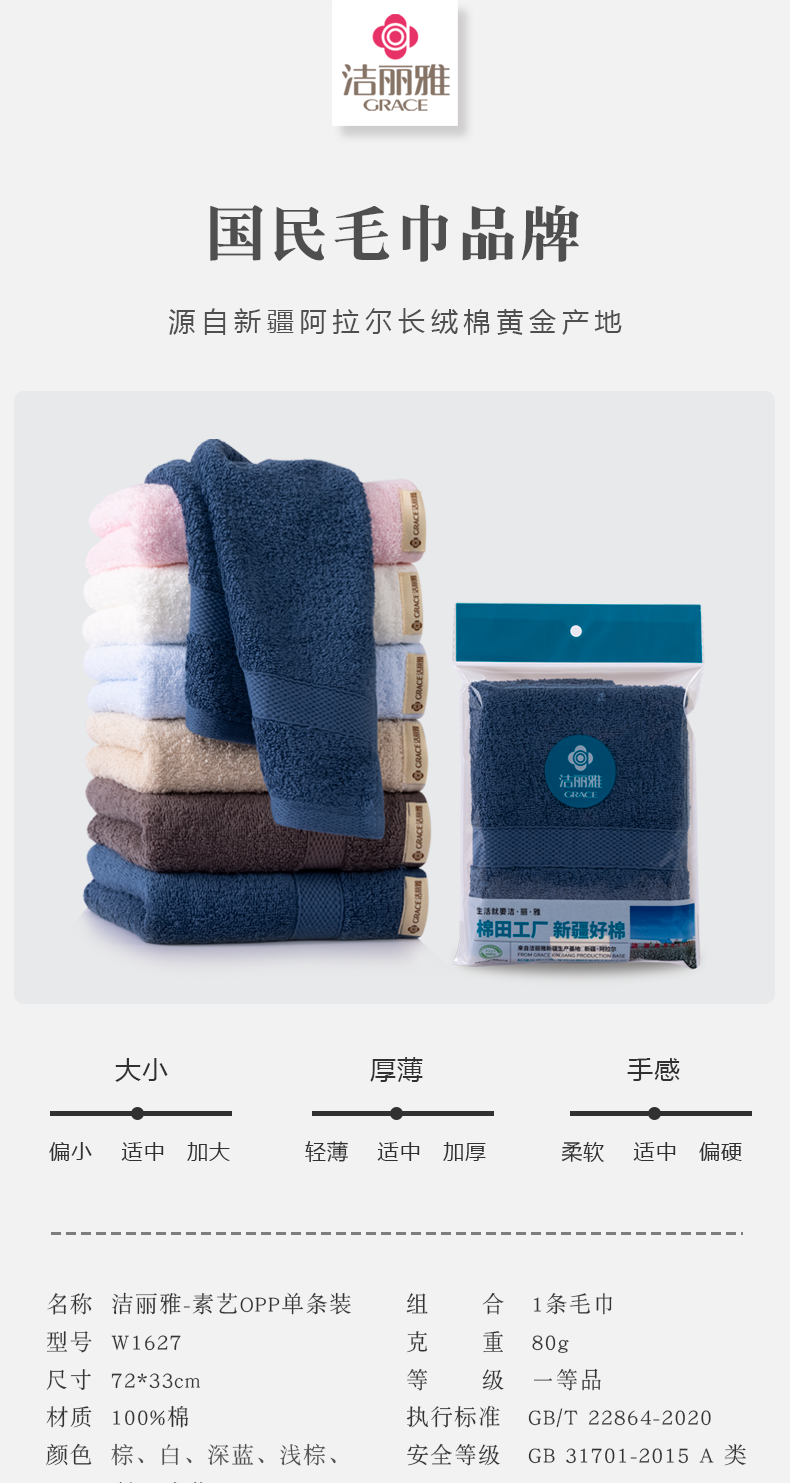 洁丽雅(GRACE)W1627素艺OPP单条毛巾装72*33cm 6925954499868 颜色随机发