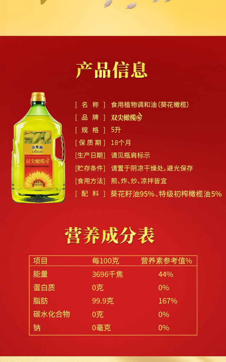 商品名称:贝蒂斯双尖橄榄+葵花油5L 6972005150117