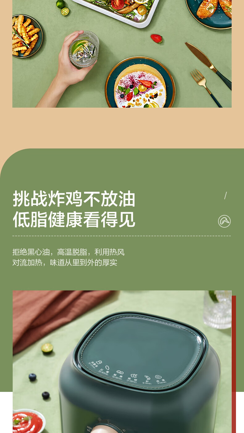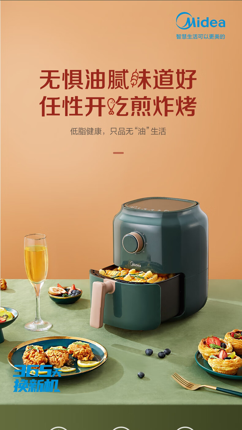 美的(Midea)空气炸锅KZ30E201G 3L绿色6939962778228