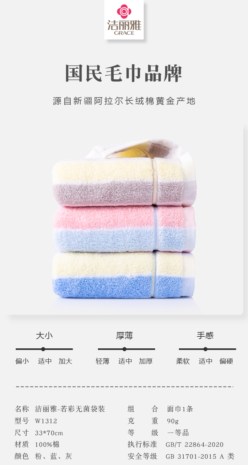 洁丽雅(GRACE)W1312若彩无菌袋单条毛巾装 33*70cm 6925954496232 颜色随机发