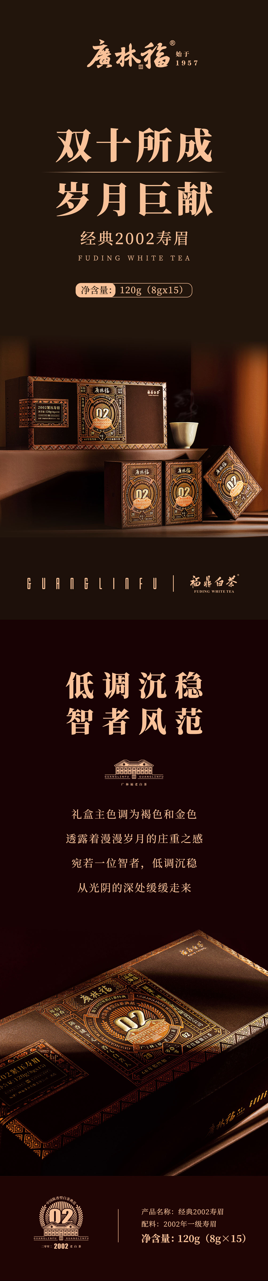 商品名称:广林福福鼎白茶 经典2002寿眉 120g/盒
