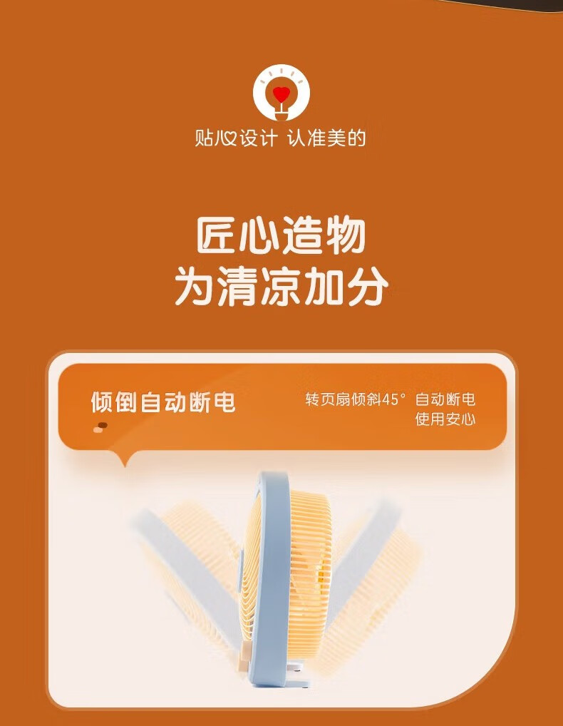 美的(Midea)转页扇KYT25-21MP 10寸 暖光橙6939924839202