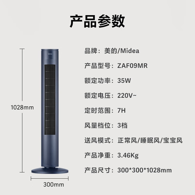 商品名称:美的(Midea) 塔扇ZAF09MR 遥控 蓝色6939924839080