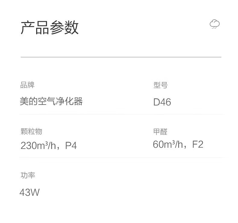 商品名称:美的(Midea)空气净化器 KJ230G-D46 极地白6939924830223