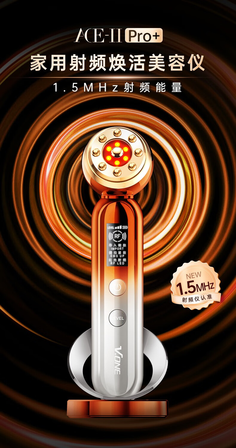 V.one 射频美容仪 无底座 按摩头镀钛V-R201 宝石红:6973098350361 翡翠绿:6973098350378 下单备注颜色