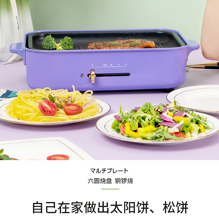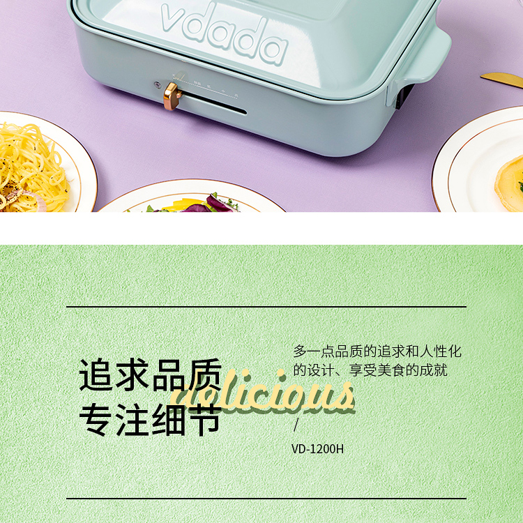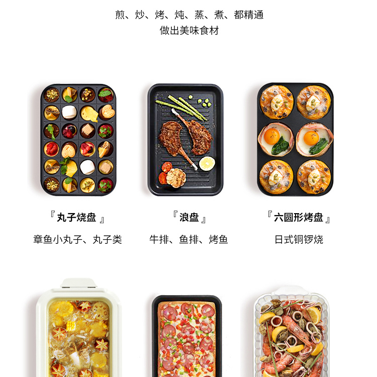 商品名称:日本vdada多功能料理锅一体锅家用烧烤肉蒸煮炒煎涮电火锅网红锅 青色标配