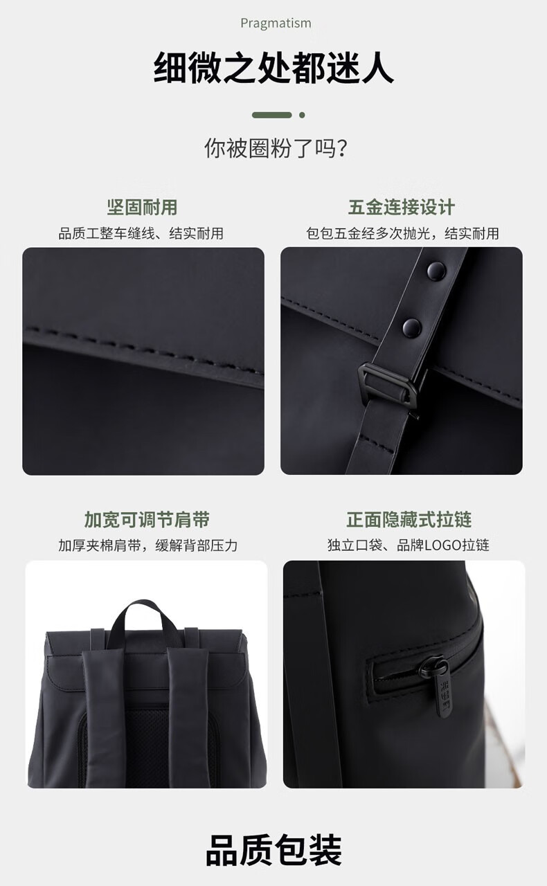 商品名称:笑梦歌开盖有喜潮流双肩包 MG8014 28.5*12.5*40cm 深夜绿/永恒黑 下单请备注颜色