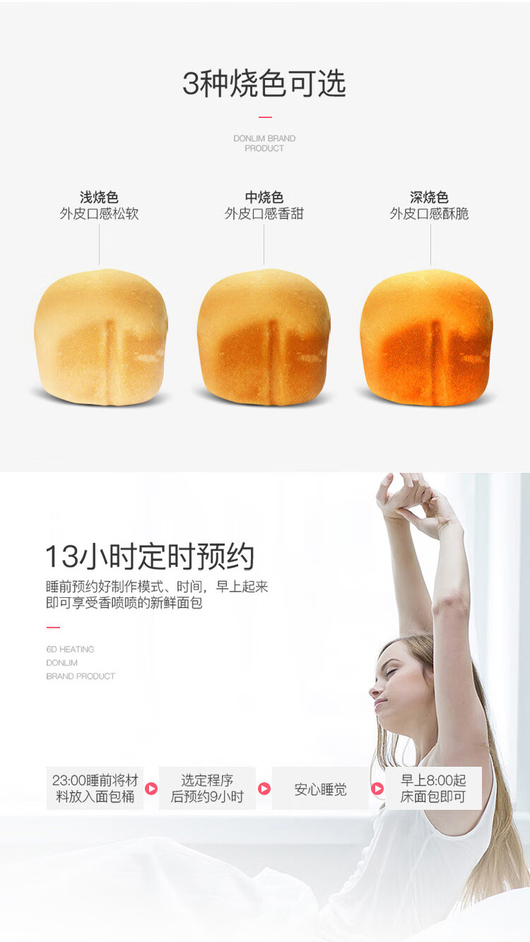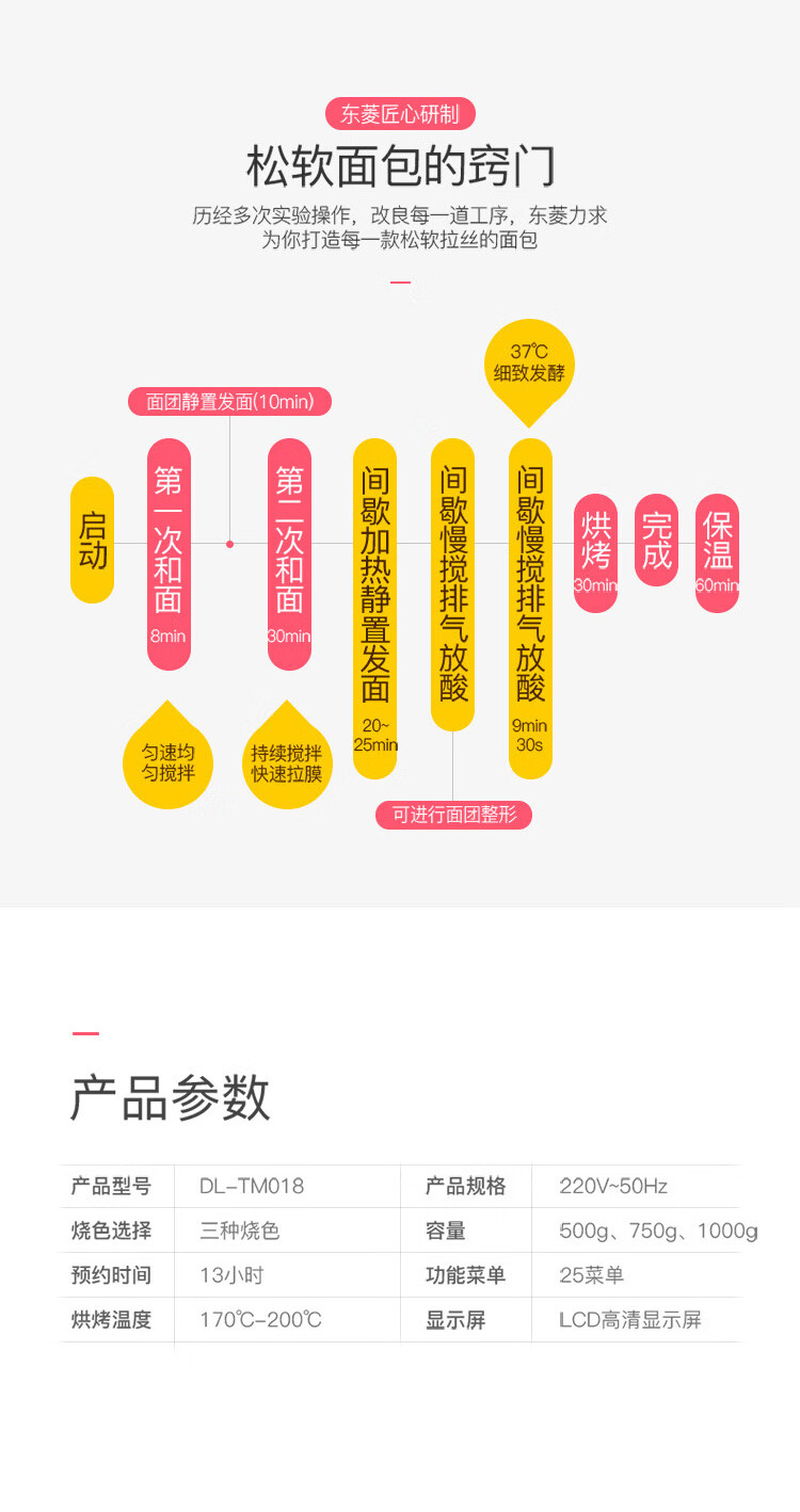商品名称:东菱 面包机 全自动 和面机 家用 揉面机 可预约智能投撒果料烤面包机 DL-TM018 6950063733312
