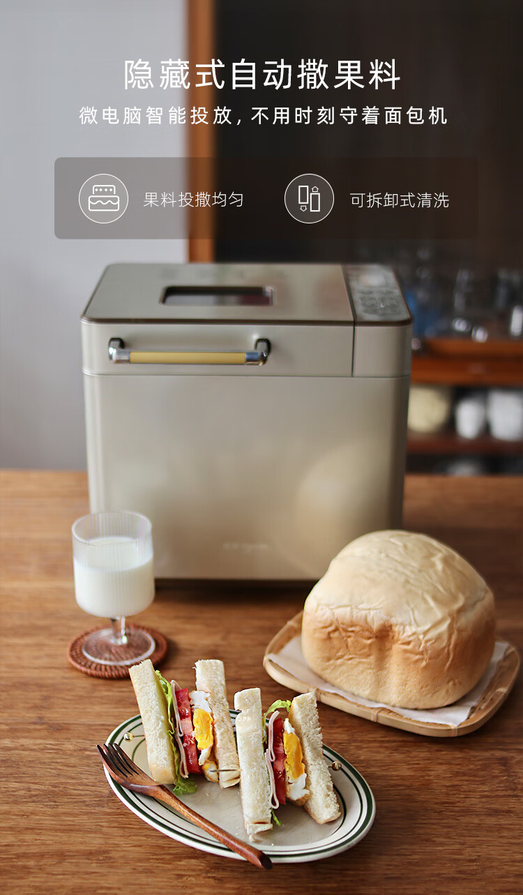 东菱 面包机 全自动 和面机 家用 揉面机 可预约智能投撒果料烤面包机 DL-TM018 6950063733312