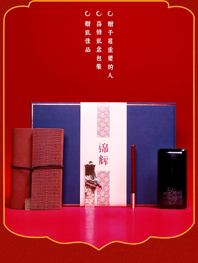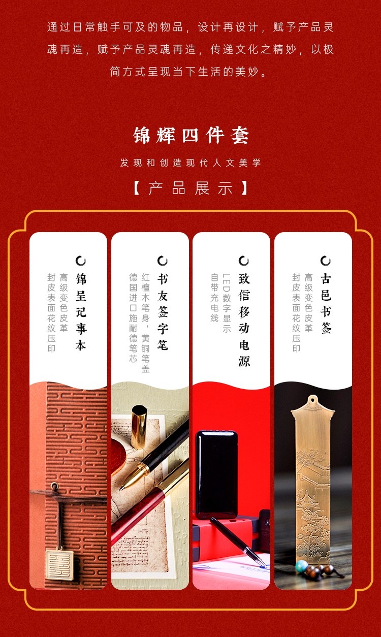 青锦锦辉2.0笔记本系列套装(记事本+签字笔+移动电源+黄铜书签)
