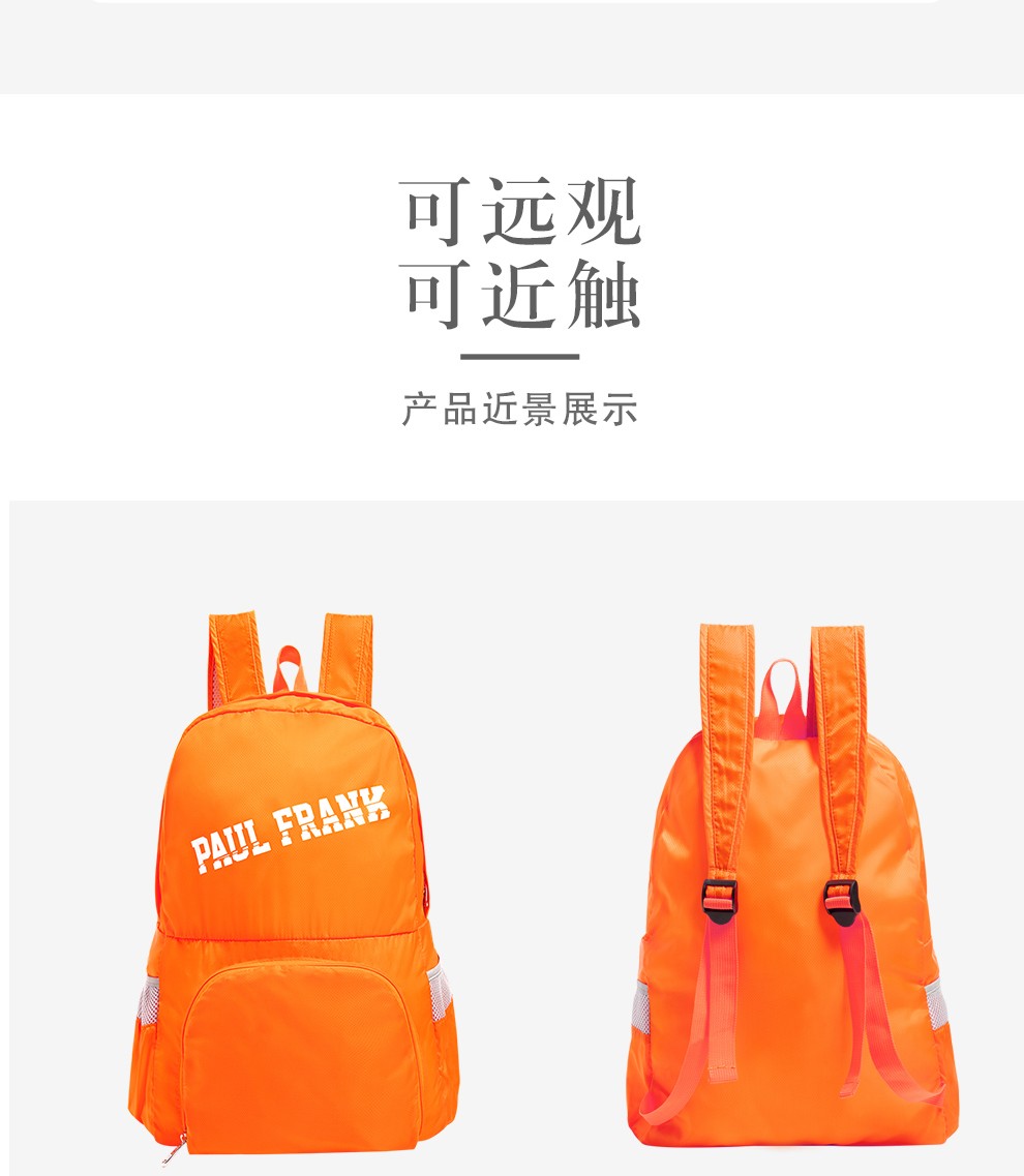 商品名称:Paul Frank大嘴猴 旅行双肩包PFL076 橙色/灰色 下单请备注颜色