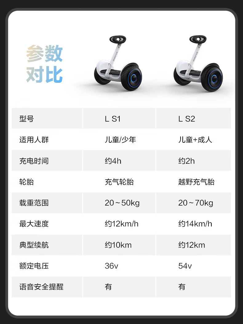 商品名称:Ninebot 九号平衡车 LS2 白色