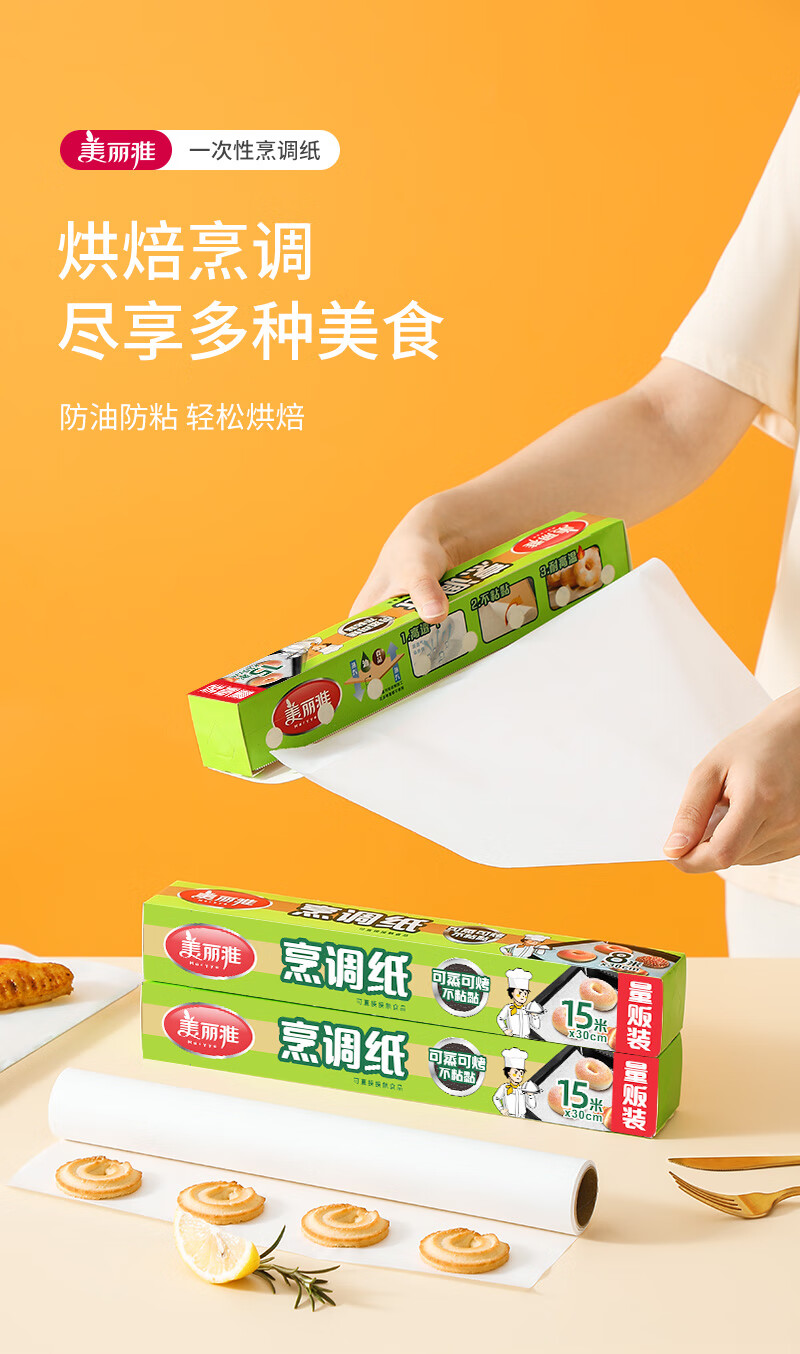 商品名称:美丽雅 烘焙烤肉纸30cm*15米烤箱空气炸锅吸油纸垫87859