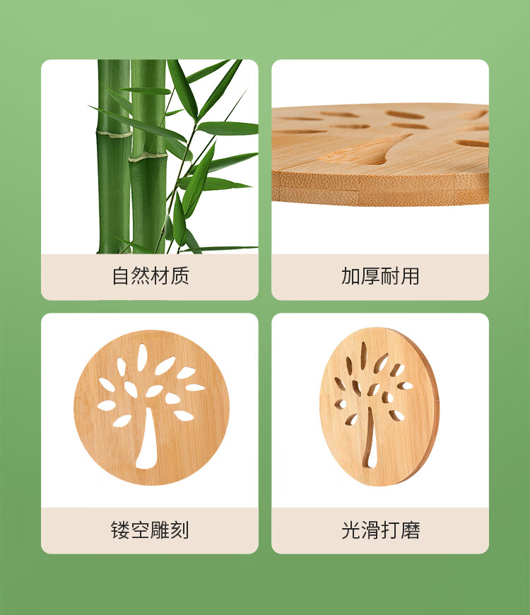 商品名称:美丽雅隔热垫餐桌 圆形16厘米竹垫茶杯垫87330