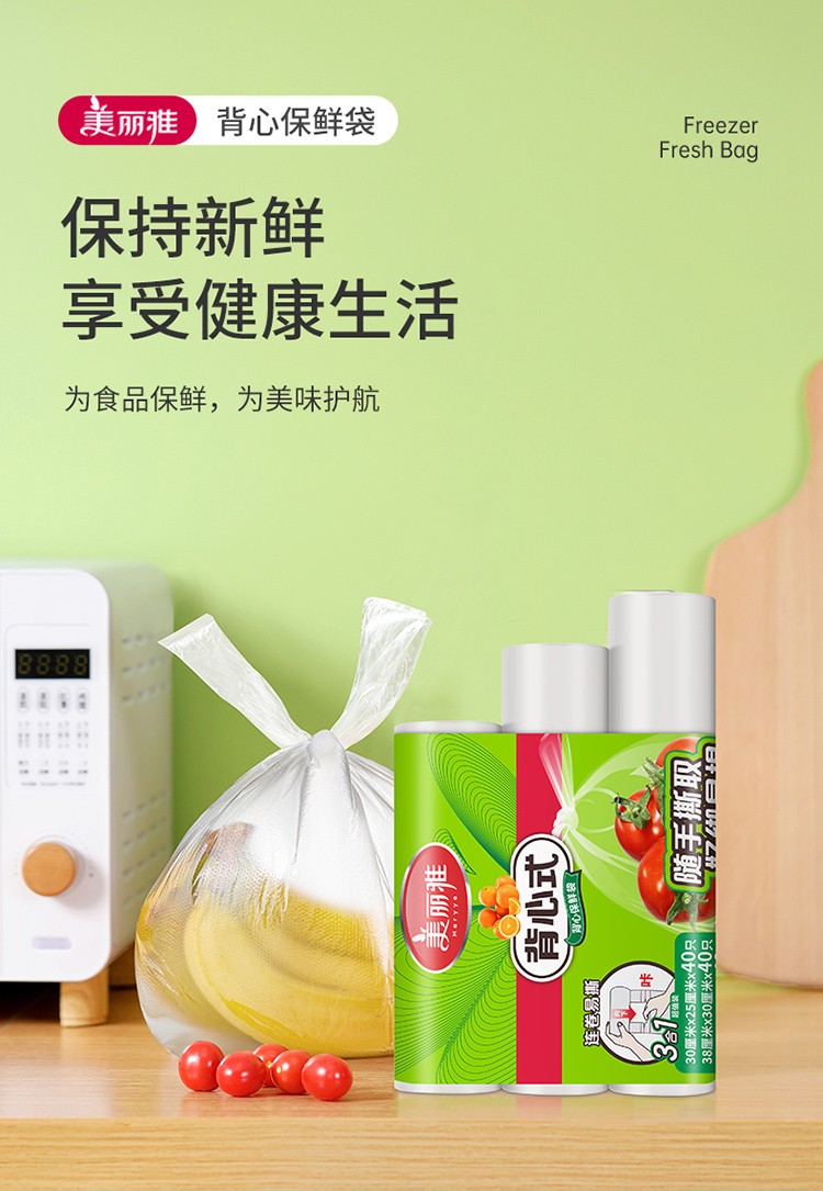 商品名称:美丽雅 一次性连卷式背心保鲜袋食品级 三合一120只 88160