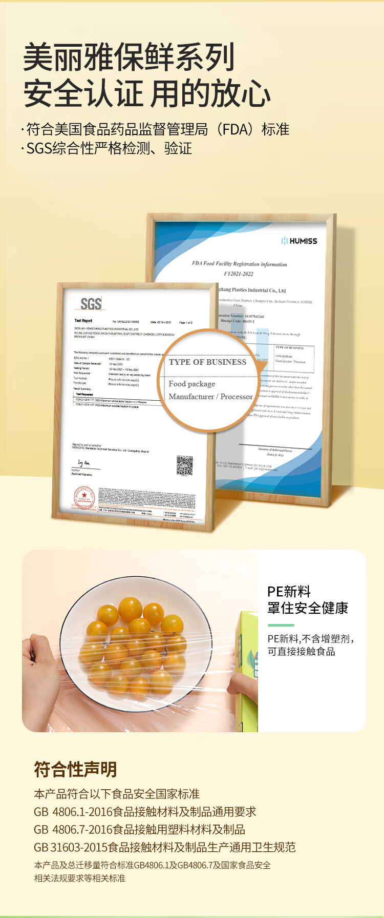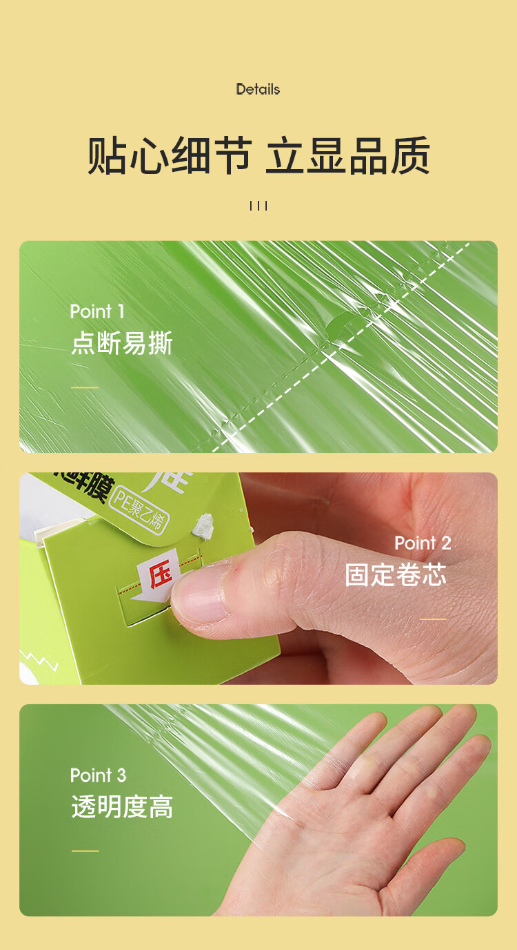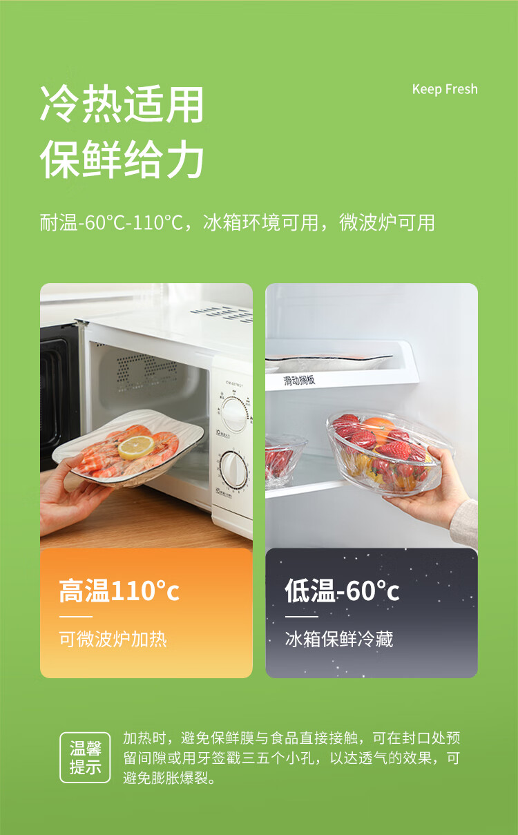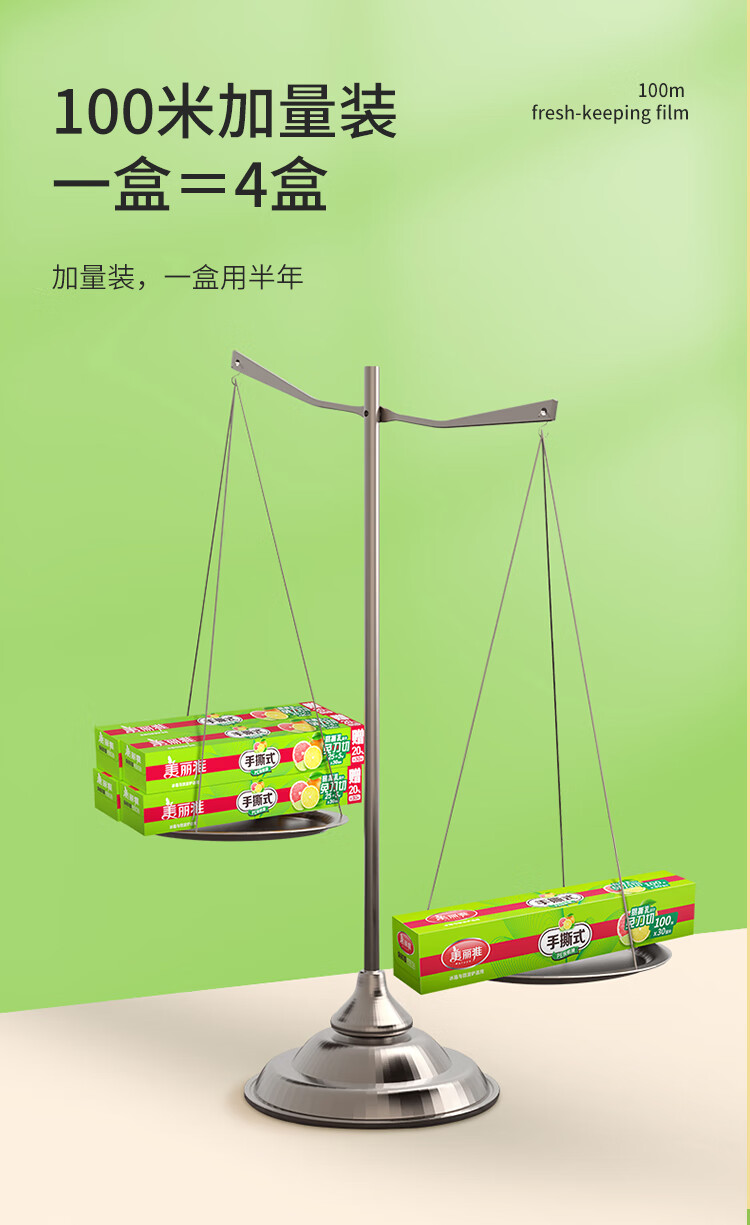 商品名称:美丽雅 一次性免刀切保鲜膜盒装30cm*100米 PE材质食品级耐高温88115