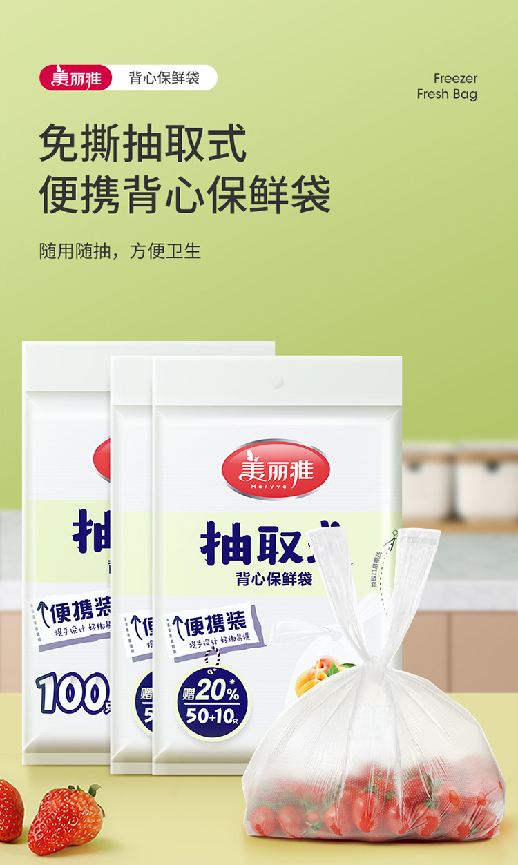 商品名称:美丽雅 一次性保鲜袋食品级背心组合装220只 (大100+中60*2)75528