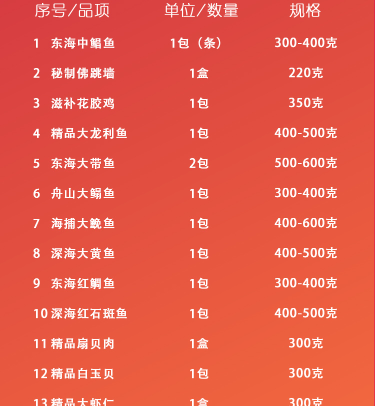 商品名称:渔老板 海选系列1888型海鲜冻品礼盒 约5670克