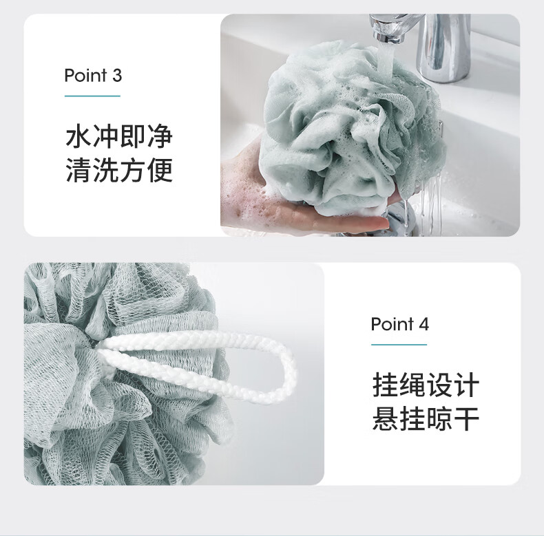商品名称:美丽雅沐浴球浴花洗澡搓澡神器男士女儿童浴巾淋浴起泡球 2只装 6923074072893 颜色随机发 偏远另加运费