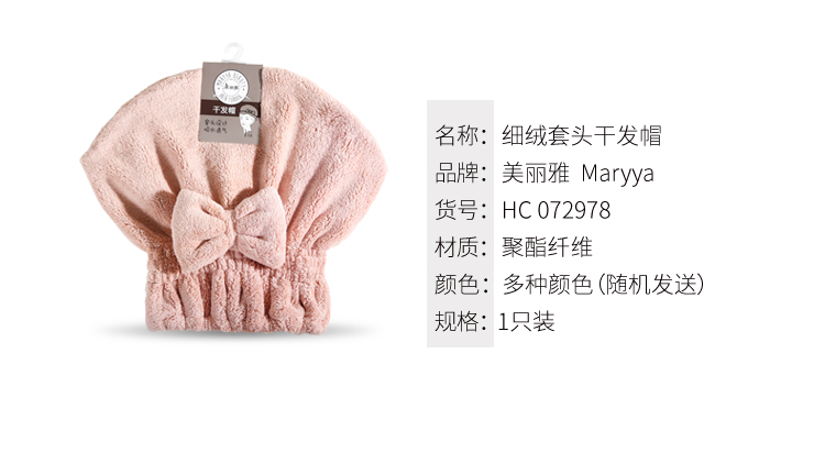 商品名称:美丽雅 细绒套头干发帽72978 颜色随机发
