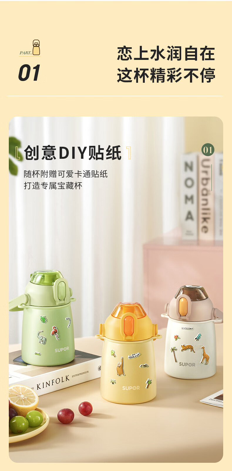 商品名称:苏泊尔(SUPOR)保温杯女士学生水杯316不锈钢大容量网红大肚杯吸管杯子【800ML-直饮+吸管】KC80JW20 芒果黄 牛油果绿 下单备注颜色
