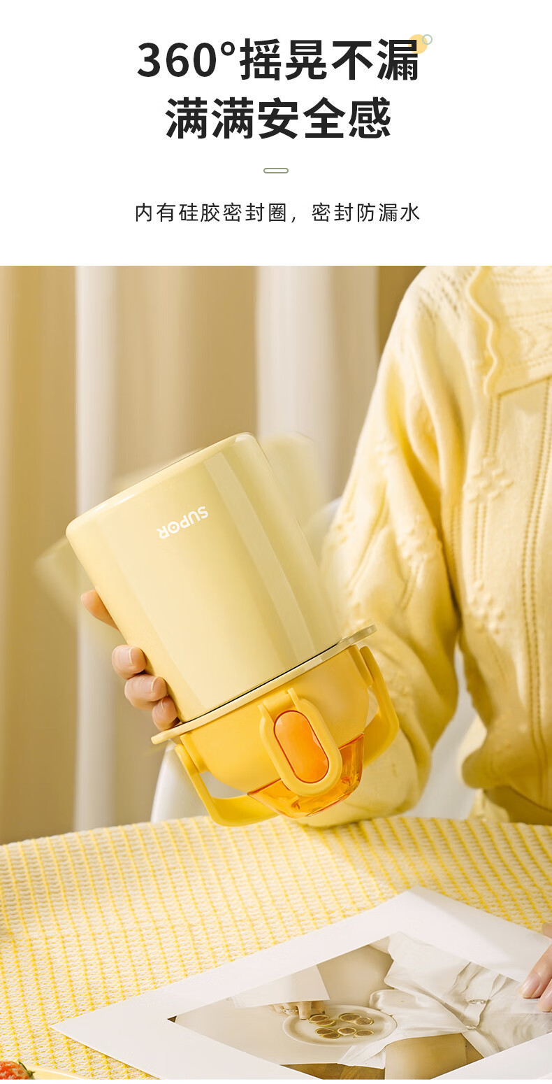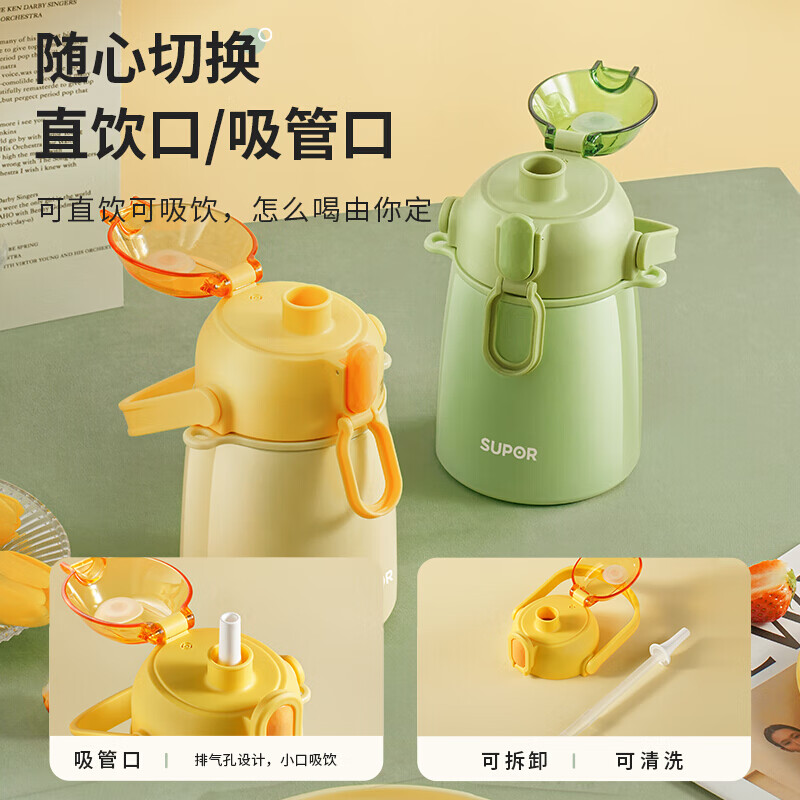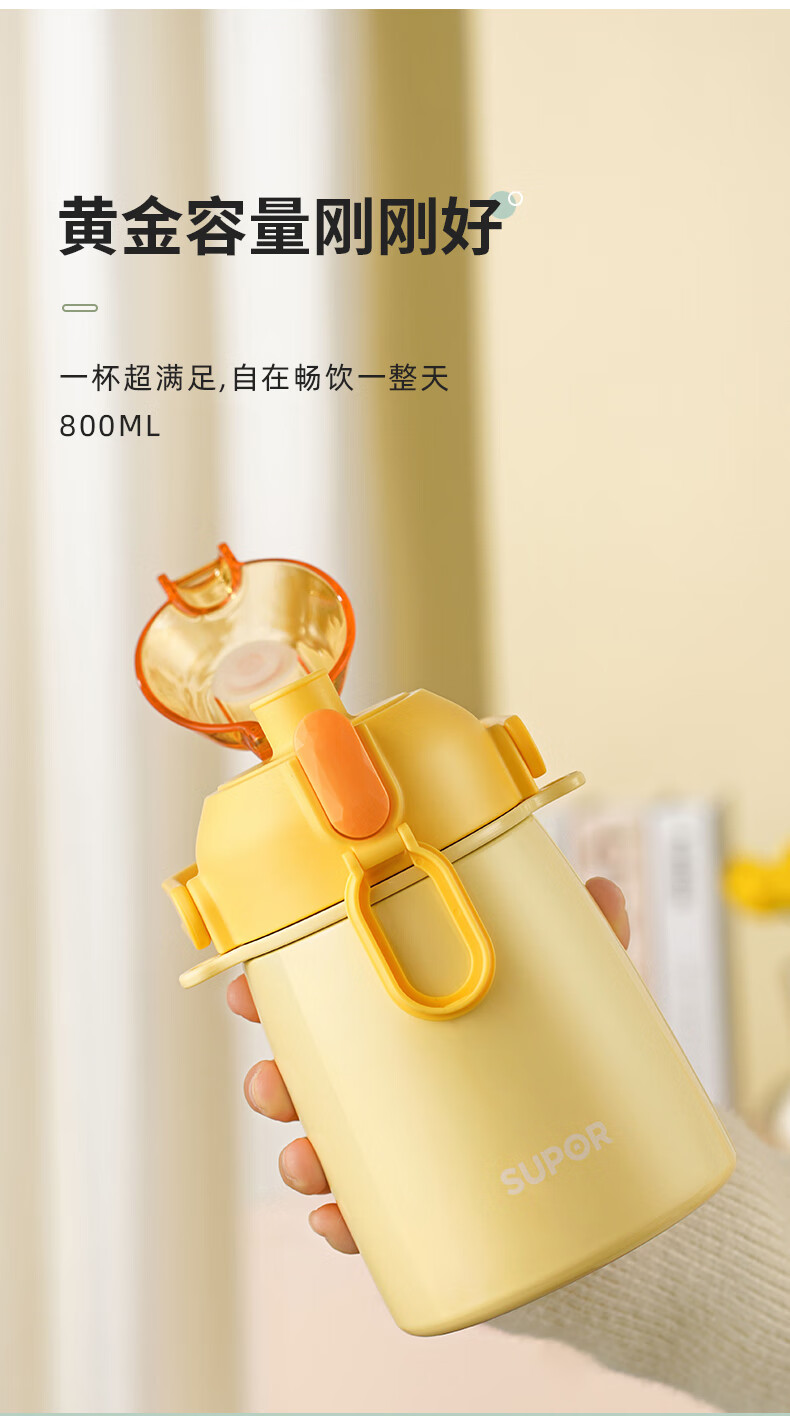 苏泊尔(SUPOR)保温杯女士学生水杯316不锈钢大容量网红大肚杯吸管杯子【800ML-直饮+吸管】KC80JW20 芒果黄 牛油果绿 下单备注颜色