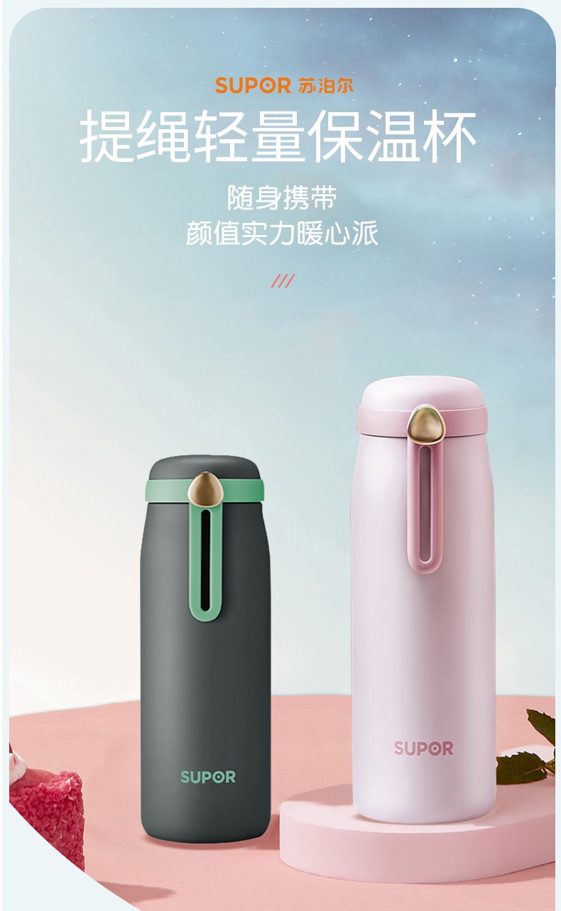 商品名称:苏泊尔(SUPOR)316L不锈钢保温杯马克杯子一键开合 KC45FR20 450ML 轻盈粉6950885591442 夜幕黑6950885591657 下单备注颜色