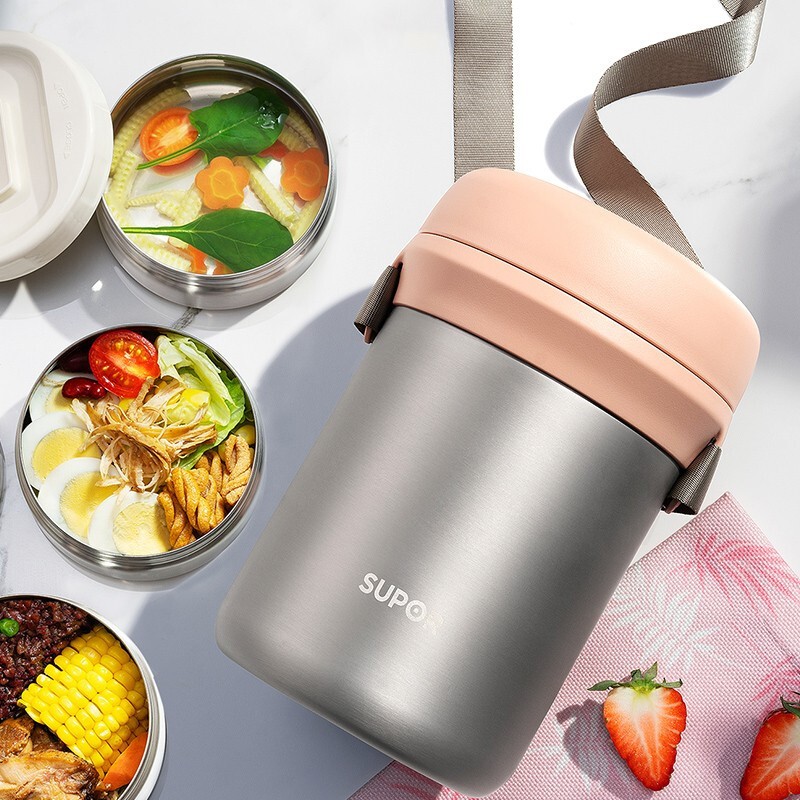 苏泊尔(SUPOR)便当盒保温饭盒保温桶真空密封提锅304不锈钢保温桶2.0L KF20AC10樱草粉 6950885586219