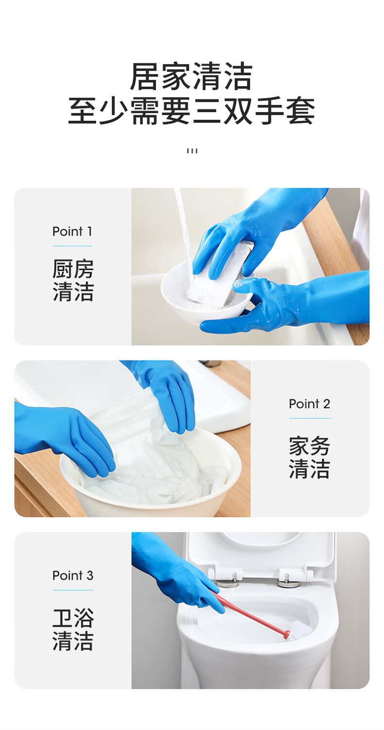 美丽雅加厚乳胶手套中号*2包HC011540 中号 长约30cm 6923074011540
