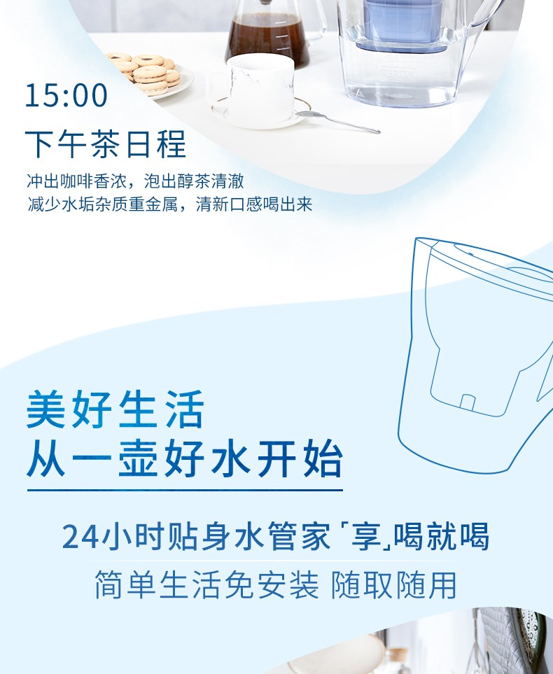 碧然德 滤水壶海洋系列3.5L装 1壶2芯 蓝色 可选下单备注颜色