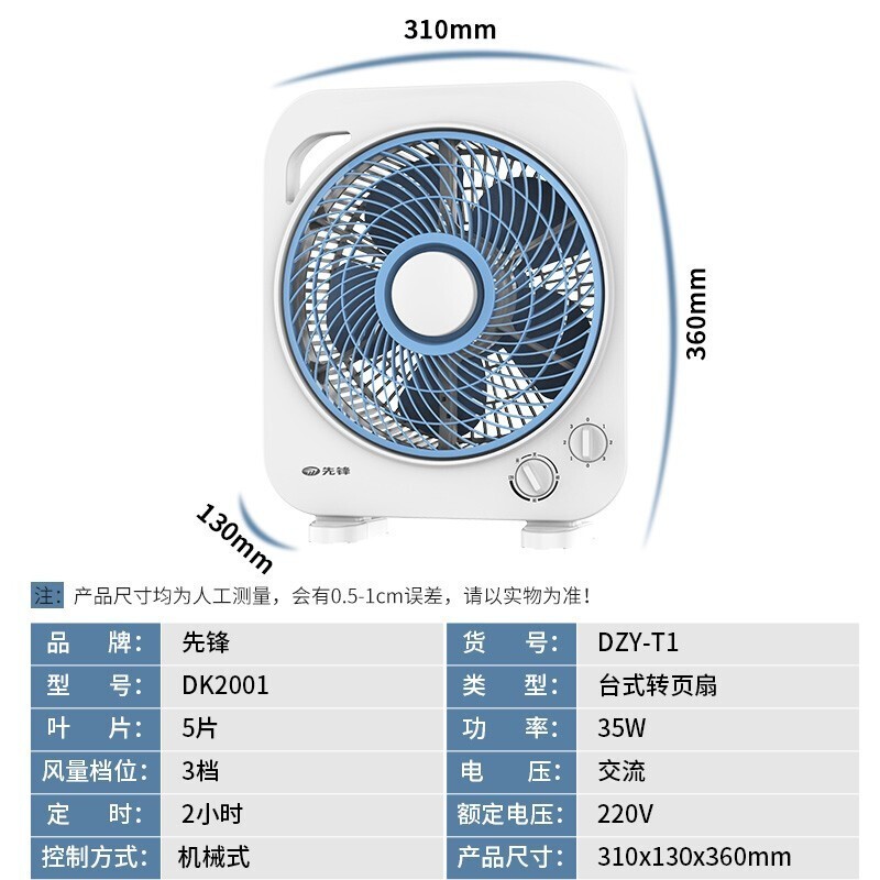 商品名称:先锋(SingFun)电风扇转页扇家用台扇鸿运扇学生写字办公桌风扇 3挡2H定时 5叶DZY-T1 6923046233147